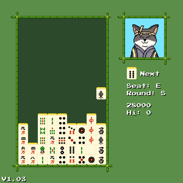 The goal is to make five tile mahjong hands (one set and one pair) horizontally, vertically, or diagonally to clear the blocks and get scored for the hand. Occasionally a bomb piece will drop and will clear the entire suit it lands on. Please be aware that this game will probably make zero sense unless you know how to play mahjong! At least there's a cute dog though.